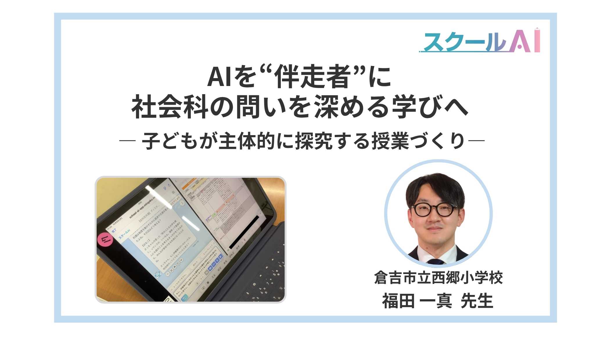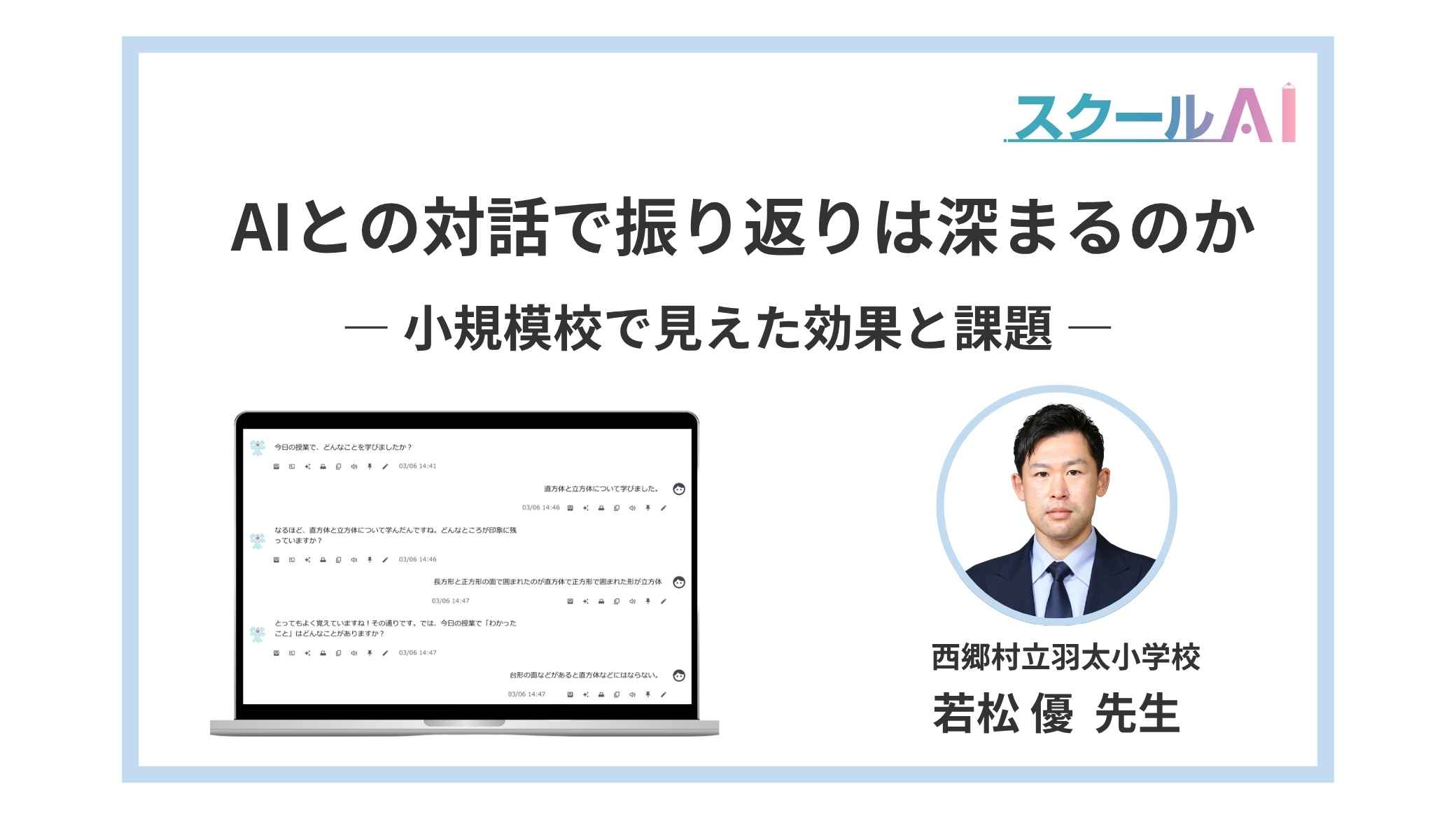 AIは、個別最適な学びと協働的な学びの両立を支える重要な技術です。スクールAIの導入は、教師の役割を代替するのではなく、教師の専門性を補完し、児童・生徒の学びをより深く豊かにする可能性を秘めています。私たちは、教育現場におけるAI活用が“便利”の先にある“意味ある学び”へとつながるよう、教育的視点からの設計と実践研究を重ねていくことが求められます。スクールAIが誰一人取り残さない包摂的な教育の実現に寄与することを期待しています。