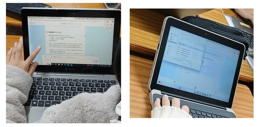 参観していた先生方も興味津々で、児童のタブレット画面を覗き込んだり、写真に収めながら操作方法を確認する姿が見られました。「スクールAIって何?」という声も教室のあちこちから聞こえ、授業の新しい取り組みに関心を持っていただけたようです。
