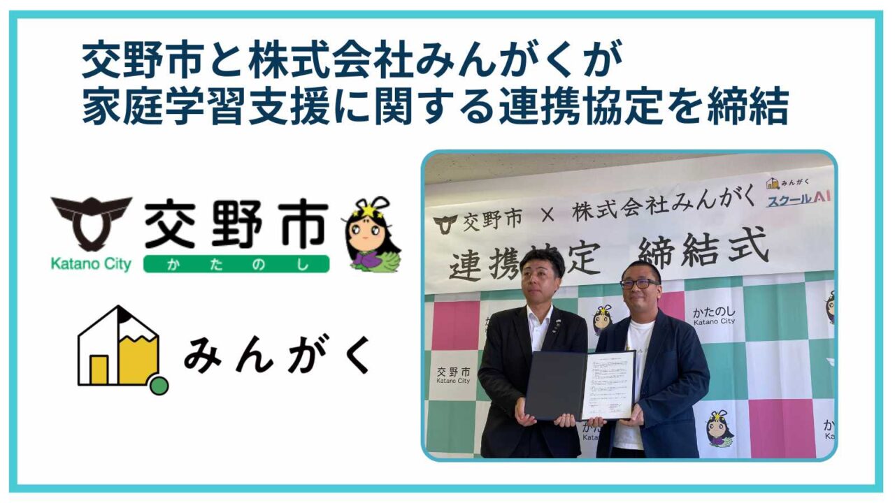 【お知らせ】交野市と株式会社みんがくが家庭学習支援に関する連携協定を締結