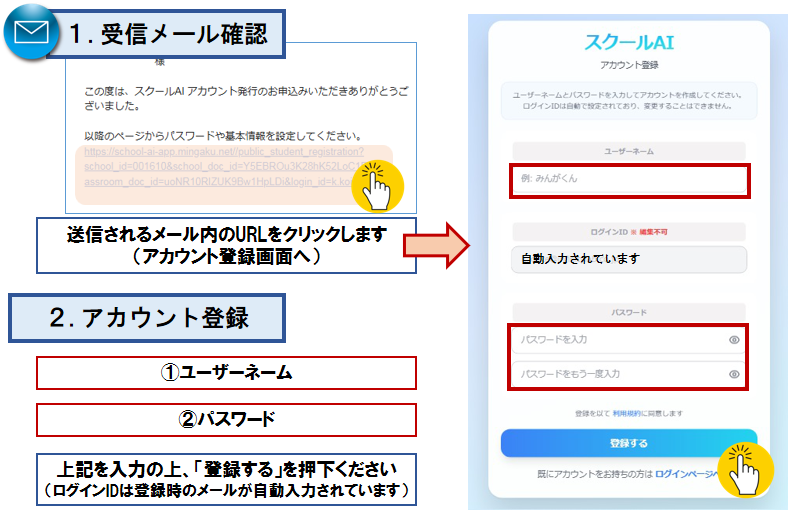 スクールAIの各種体験アプリをご利用いただくためのアカウントを発行いたします。お手数お掛けしますが、以下よりアカウント登録をお願いします。