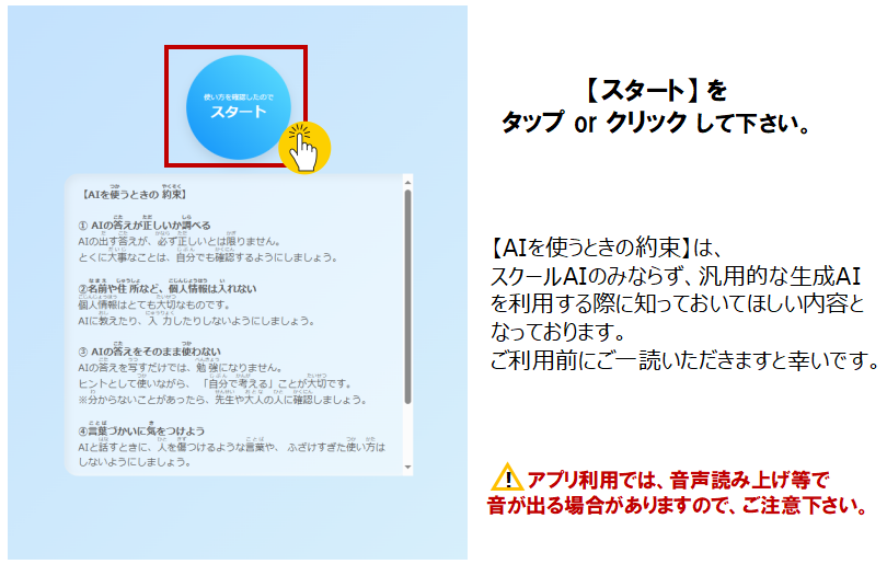本体験アプリは、全国の先生が開発したアプリが使え、自分でもつくれる生成AI活用プラットフォーム『スクールAI』で作られています。