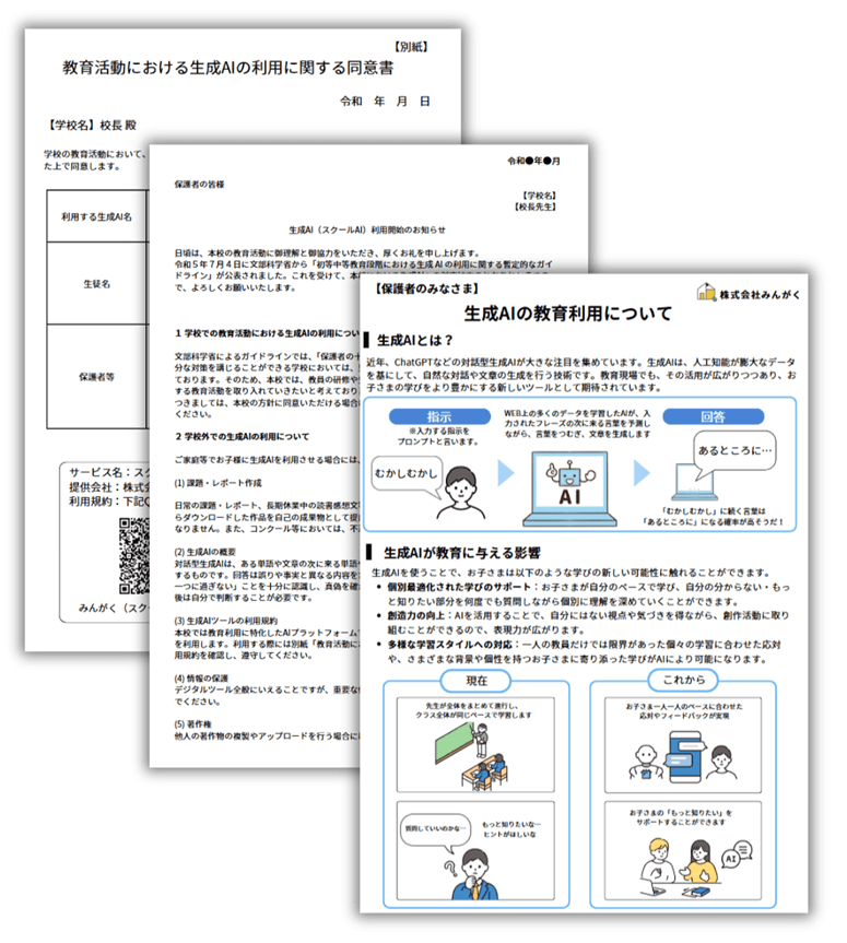 安心して使用いただけるように、保護者の方へ向けたご案内資料や使用承諾書もご用意しています。