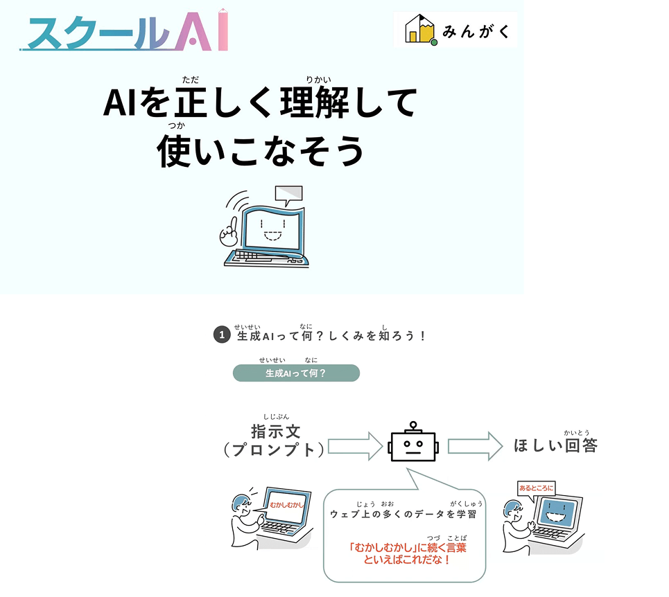 生徒用に説明資料と動画教材をご用意。生成AIの安心・安全な使い方についてしっかり学べます。